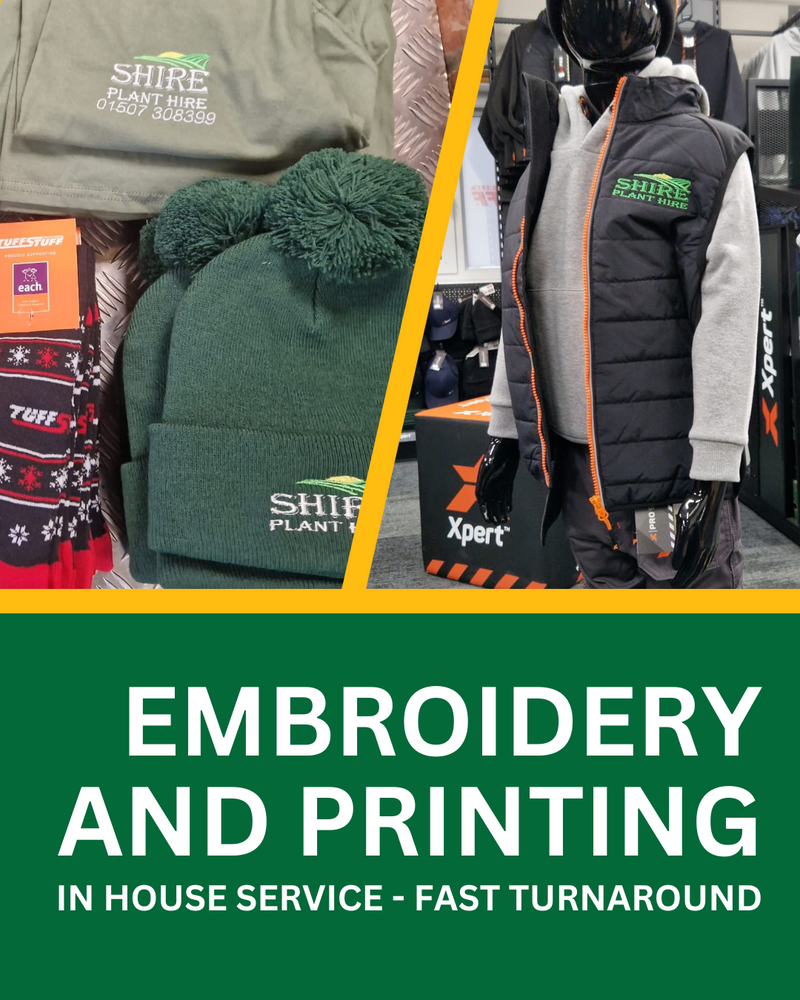 Shire Workwear offer a wide selection of durable workwear designed to meet your team's needs. From protective PPE to functional uniforms, our range is perfect for those working in demanding environments. Additionally, we provide custom embroidery and printing services, allowing you to personalise your work wear with your company logo or any design of your choice. Whether you're outfitting your team for work or promoting your brand, Shire Workwear can help you create a professional, cohesive look.