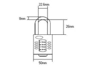 The Squire CP50 Combination Padlock 50mm has a 4-wheel re-codeable combination offering upto 10,000 combinations and is supplied with code changing instructions inside the pack.