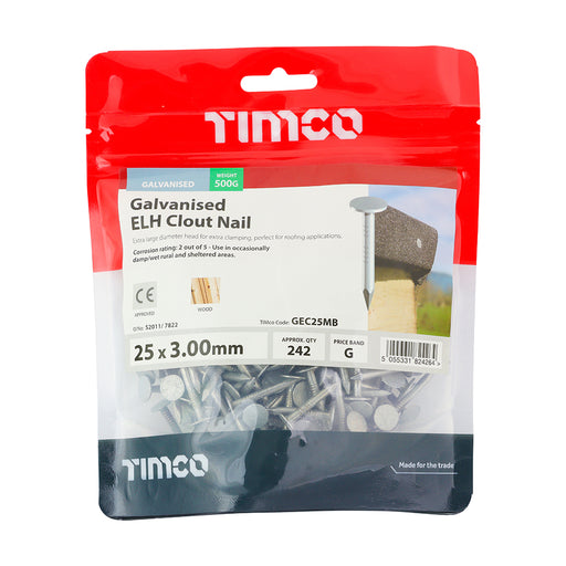 View full detailsTimco | Galvanised Clout Nail ELH 25 x 3.0