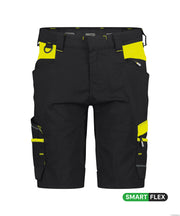Hello Manilla. The go-to work shorts in our DASSY® Logix collection. The perfect thing to wear in hot and sunny weather. Thanks to Smart Flex you can do your job comfortably. Moreover, your shorts always stay in place with the adjustable elasticated waistband at the back. The contrasting fluorescent fabric and reflective details make these shorts a real DASSY® Logix item. Not EN ISO 20471 certified.