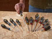 The soft grip handles givesa perfect combination of great grip and reduced fatigue in use and are colour coded for easy identification of the right tip type for the application. The smooth domed ends offer fast, comfortable spinning action and the large diameter handles offer higher torque when driving wood screws.