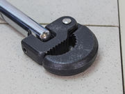 These Faithfull basin wrenches have adjustable spring action jaws that maintain an automatic grip on pipe fittings. The forged steel jaws turn 180° for greater flexibility. Essential tool for use on compression fittings, copper or polythene, on basins and baths.