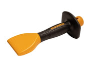 1 x Pro Lead Chasing Wedge made for sharpening folds in sheet lead, copper, zinc and aluminium. Tough, impact resistant polypropylene construction ensures a longer working life and a soft rubberised grip for a more secure hold and greater comfort during use. With integrated hand-guard for overstrike protection and a lanyard hole for safe and secure tethering when working at height.