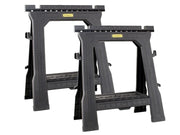 The Stanley 70-713 Folding Sawhorses with a robust polypropylene structure and integrated grooves to hold and clamp materials and top rubber pads/points to prevent materials slipping. They also feature a tool tray to hold power tools and hand tools and side cable hangers. Supplied as a Twin Pack.