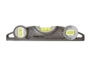 The STANLEY® FatMax® Pro Torpedo Level has a a die-cast aluminum body for long lasting durability. The solid block vial provides accuracy of 0.5mm/m (0.0005in/in), and a 180-degree rotating vial is designed to duplicate angles. It includes a magnified center vial for improved visibility.