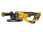 The DEWALT DCG460 XR FlexVolt Angle Grinder has a brushless motor for improved performance, even in demanding applications. Its soft start feature helps to prevent the tool from jolting upon start up. Whilst the electronic Clutch (E-Clutch) eliminates kick back and protects both user and tool from high-load situations.