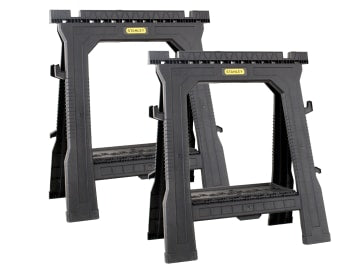 StanleyThe Stanley 70-713 Folding Sawhorses with a robust polypropylene structure and integrated grooves to hold and clamp materials and top rubber pads/p...